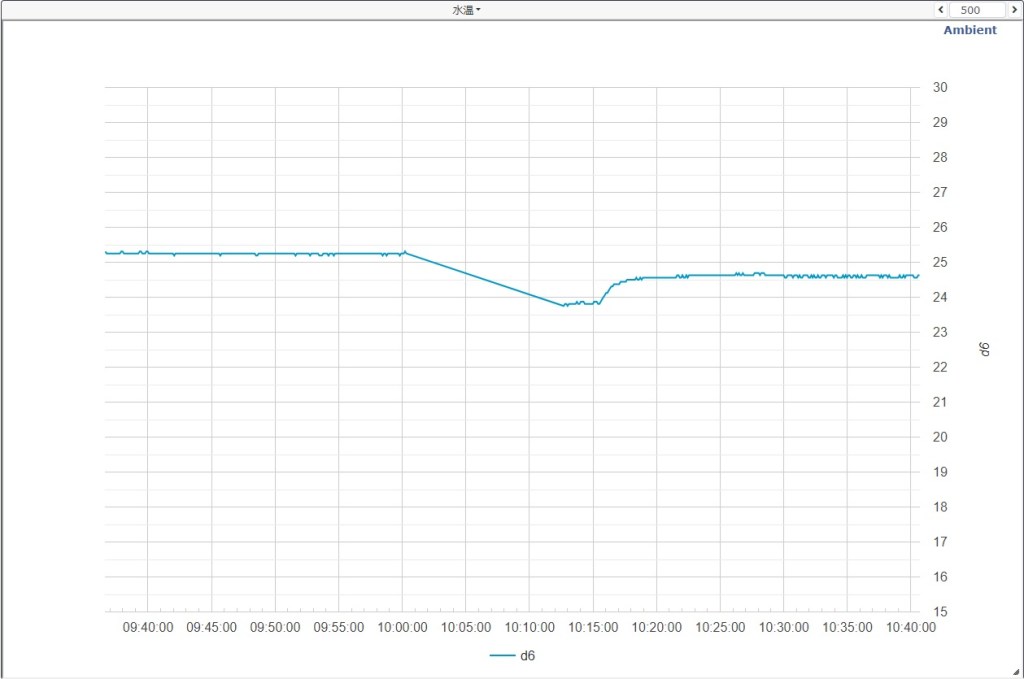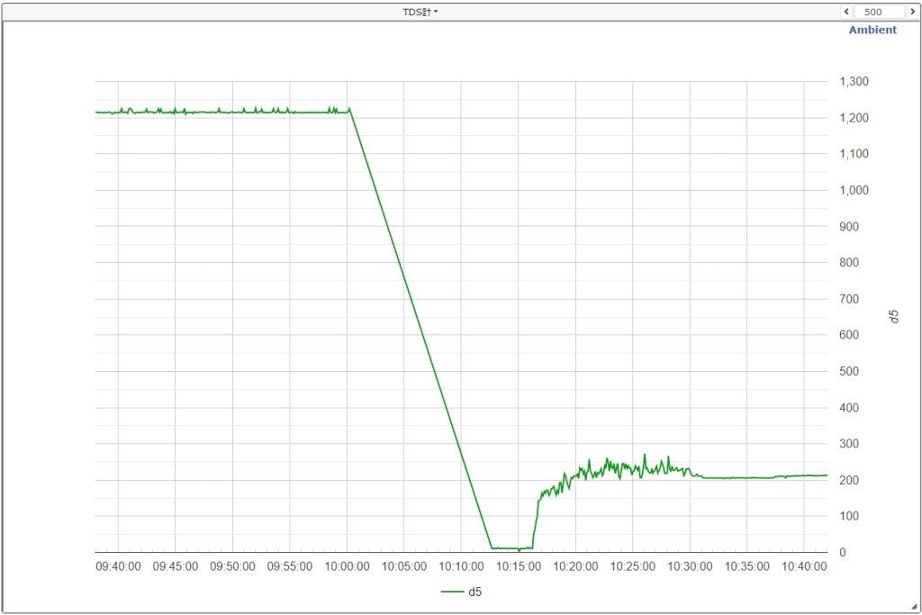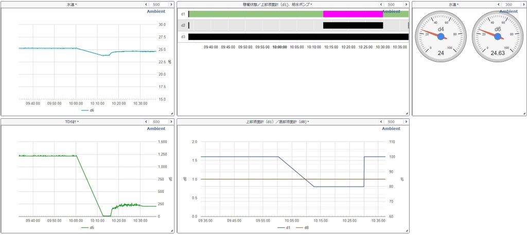 水替え機能を実装し、水替えを自動で実施した時のAmbientの表示は、以下のようになります。