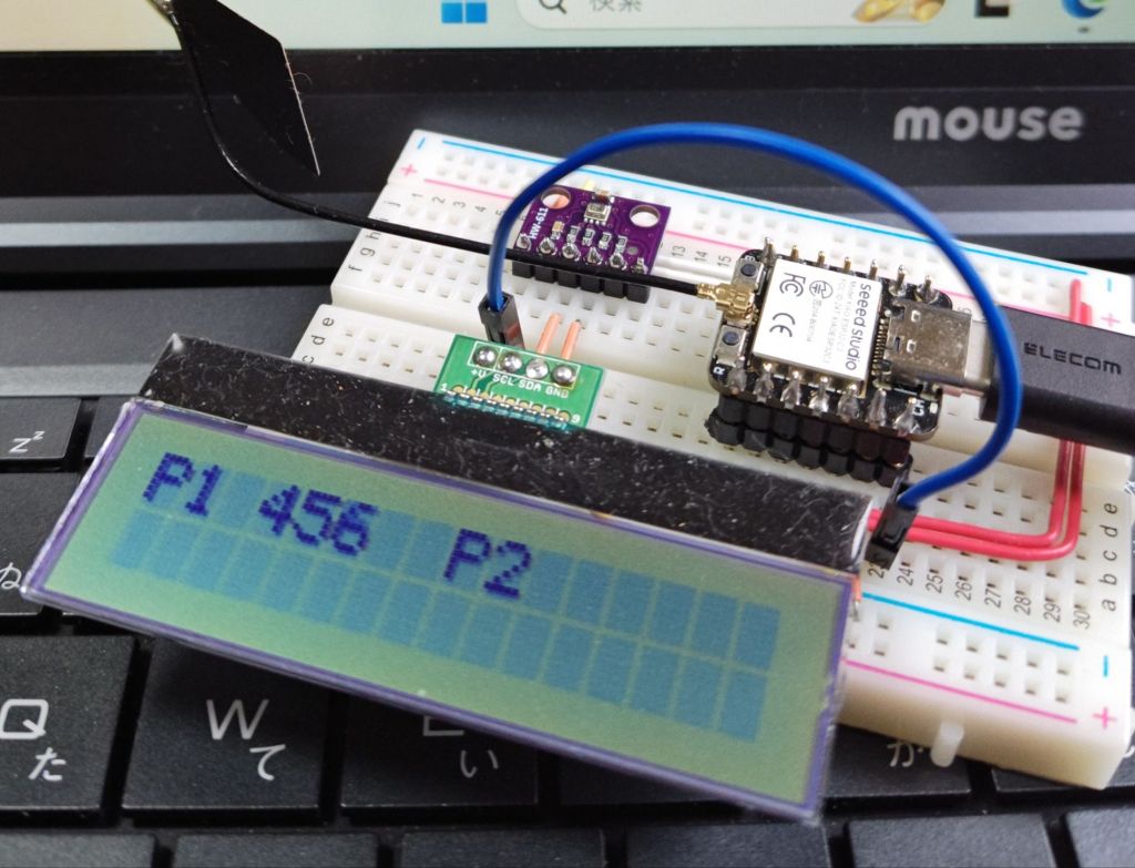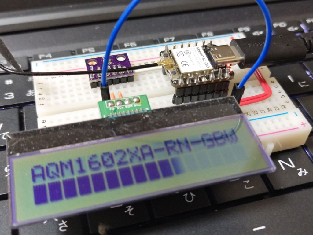 警告通り、XIAO ESP32C3ではLiquidCrystal_I2C.hは機能しませんでした。何も表示できない、というかLCDは起動すらしていない様子。ぐぅぅ、これが敗北の味なのか。。。
